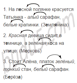 Прочитайте. Вставьте пропущенные буквы. Впишите в загадки подходящие по смыслу имена прилагательные.