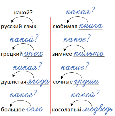 ) связь имени прилагательного с именем существительным. Над стрелкой запишите вопрос, на который отвечает имя прилагательное (какой? какая? какое? какие?).№92 рабочей тетради 2019-2022 (стр. 43):