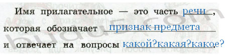 Имя прилагательное - это часть ___ , которая обозначает ___ и отвечает на вопросы ___ .