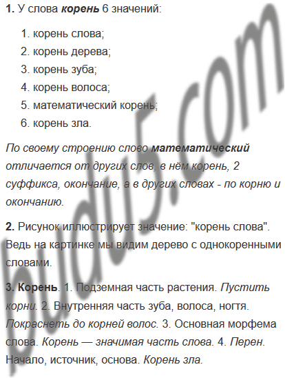 3. Попытайтесь сформулировать разные значения слова корень. Проверьте себя по толковому словарику учебника.