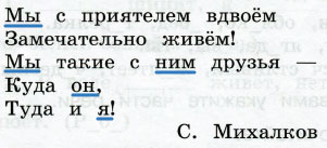 • Подчеркните известные вам местоимения. Какое местоимение употребляет рассказчик, говоря о себе? о своём друге? о себе и своём друге?