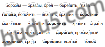 Борозда — бразды, бред — бередить, глава — ..., волочить — влачить, краткий— ..., молочный — млечный, ... — хранить, страна — сторона, драгоценный — ...» прохладный — среда — ...» возглас — ....