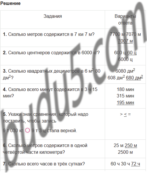 | 7. Сколько всего часов в трёх сутках? | 60 ч 30 ч 72 ч |