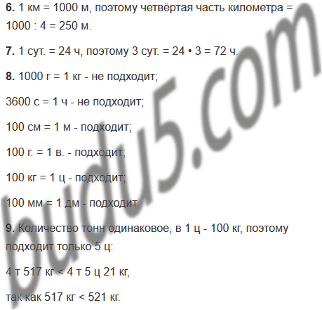 | 6. Сколько метров содержится в одной четвёртой части километра? | 25 м 250 м 2500 м |