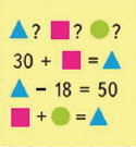 Теперь мы знаем, что треугольник равен 68, квадрат равен 38, значит, в третьем равенстве нам неизвестен только круг, который стоит на месте второго слагаемого. Чтобы найти неизвестное слагаемое, нужно  из суммы вычесть известное слагаемое, так как треугольник = 68, а квадрат = 38, то найдём круг: 68 - 38 = 30.