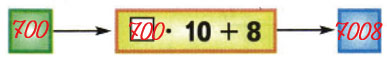(7008 - 8) : 10 = 7000 : 10 = 700