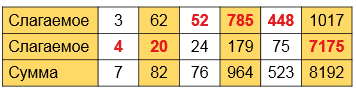 Пишу (единицы под единицами, десятки под десятками, сотни под сотнями, единицы тысяч под единицами тысяч, десятки тысяч под десятками тысяч):