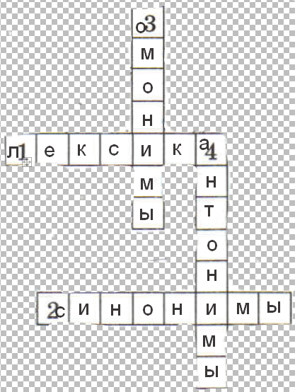 По горизонтали: 1. Лексика. 2. Синонимы.