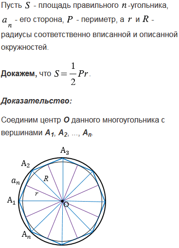 Выведите формулу для вычисления площади правильного многоугольника через его периметр и радиус вписанной окружности.