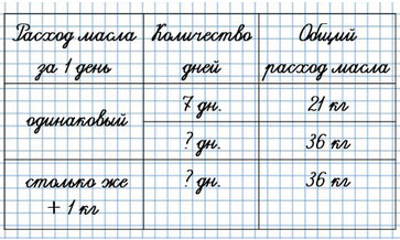 293. За 7 дней в столовой израсходовали 21 кг масла. На сколько дней при той же норме расхода хватит 36 кг масла? На сколько дней хватило бы этого масла, если бы каждый день расходовали на 1 кг больше?