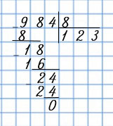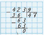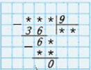 При делении на 9 какого-то числа взяли 36 и в остатке получилось 6. Значит, исходное число 36 + 6 = 42, а в частное запишем 36 : 9 = 4.
