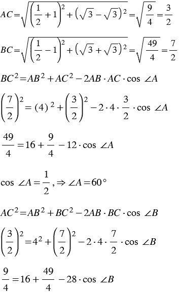 Найдите углы треугольника с вершинами