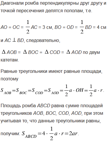 а) диагонали ромба равны 6 см и 8 см;
