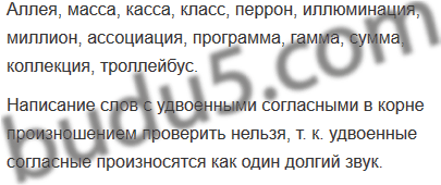 Выберите из любого орфографического словаря десять слов с удвоенными согласными в корне и запишите. Можно ли проверить произношением написание таких слов? Почему?