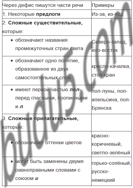2. Используя материалы, подготовленной вами таблицы, расскажите о том, когда на письме ставится дефис.