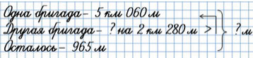 1) 5 км 060 м + 2 км 280 м = 7 340 (м) - другая бригада.