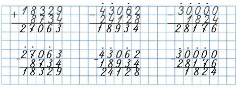 Повтори алгоритм письменного сложения и вычитания многозначных чисел.