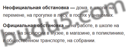 Как вы понимаете выражение официальная и неофициальная обстановка? Сгруппируйте примеры и прочитайте их в таком порядке: сначала те, которые обозначают неофициальную обстановку, затем те, которые обозначают официальную обстановку.