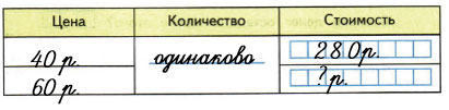 3. Для детского сада купили несколько мячей по цене 40 р. и столько же кукол по цене 60 р. Сколько стоили все куклы, если за мячи заплатили 280 р.?