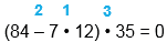 1) 7 • 12 = 84 2) 84 - 84 = 0 3) 0 • 35 = 0 |