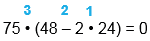 1) 2 • 24 = 48 2) 48 - 48 = 0 3) 75 • 0 = 0 |