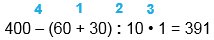1) 60 + 30 = 90 2) 90 : 10 = 9 3) 9 • 1 = 9 4) 400 - 9 = 391
