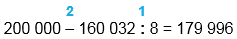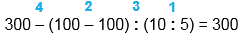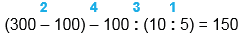 1) 10 : 5 = 2 2) 300 - 100 = 200 3) 100 : 2 = 50 4) 200 - 50 = 150 |