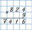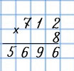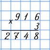 Умножаю сотни: 8 • 2 = 16. 16 сот. - это 1 ед. тыс. и 6 сот.; 6 сот. пишу под сотнями, а 1 ед. тыс. прибавлю к единицам тысяч после умножения единиц тысяч.