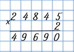 Пишу (единицы под единицами, десятки под десятками, сотни под сотнями, единицы тысяч под единицами тысяч, десятки тысяч под десятками тысяч): 24 845 • 2.
