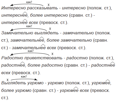 С данными словами составьте глагольные словосочетания. Запишите эти словосочетания, образуя степени сравнения наречий. Докажите, что данные слова являются наречиями.