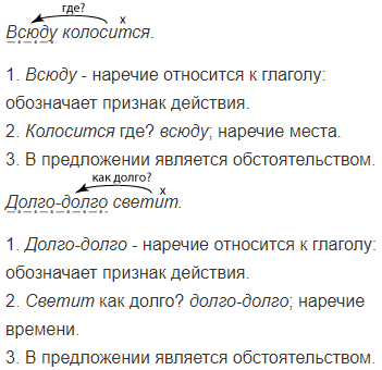 3. Степь (где?) кругом - наречие места, колосится (где?) всюду - наречие места, кукует (как?) медленно - наречие образа действия; кукует (где?) вдали - наречие места, веет (как?) чуть - наречие меры и степени, шевелится (как?) чуть - наречие меры и степени, блистают (как?) тайком - наречие образа действия, светит (как долго?) долго-долго - наречие времени, шумела (каким образом?) тише - наречие образа действия в сравнительной степени, проходят (как?) шире - наречие образа действия в сравнительной степени, спят (как?) таинственно - наречие образа действия, шумели (где?) где - наречие места, шумели (когда?) когда-то - наречие времени, синеет (как?) мягче - наречие образа действия в сравнительной степени, светит (как?) выше - наречие образа действия в сравнительной степени.