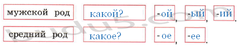 Прочитайте. Впишите пропущенные вопросы и окончания, которые могут быть у имён прилагательных в именительном падеже.