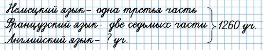 37. В школе 1260 учеников. Одна третья часть всех учеников изучает немецкий язык, две седьмых части всех учеников - французский язык, а остальные ученики - английский. Сколько учеников изучает английский язык?