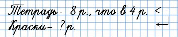 1. Тетрадь стоит 8 р. Тетрадь в 4 раза дешевле коробки красок. Сколько стоит коробка красок?