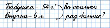 4. Бабушке 54 года, а внучке 6 лет. Во сколько раз бабушка старше внучки?