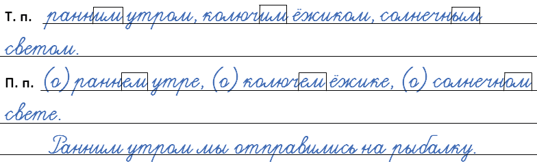 Т. п. каким? ранним утром, колючим ёжиком, солнечным светом.