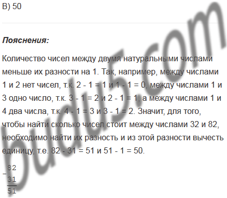 Сколько чисел стоит в натуральном ряду между числами 31 и 82?