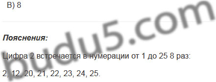Дома на улице пронумерованы подряд числами от 1 до 25. Сколько раз цифра 2 встречается в нумерации?