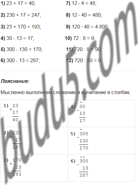 2) 230 + 17; 5) 300 - 130; 8) 1240; 11) 720 : 8;