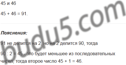 Назовите два последовательных натуральных числа сумма которых равна 91.