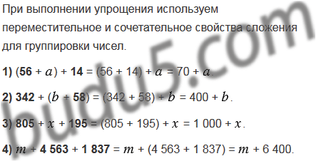 1) (56 + ) + 14; 3) 805 + + 195;
