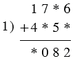 Вместо звездочек поставьте цифры так, чтобы сложение было выполнено верно: