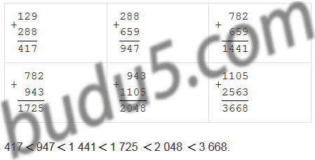 Не выполняя вычислений, расположите данные суммы в порядке возрастания: