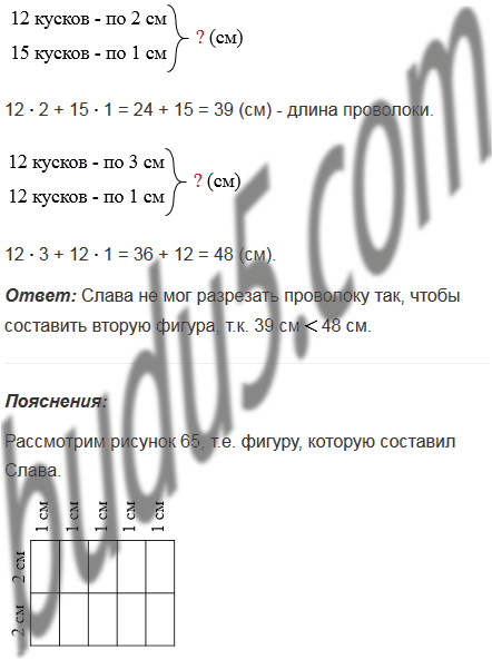 Слава разрезал проволоку на кусочки и составил фигуру, изображенную на рисунке 65. Мог ли Слава разрезать эту же проволоку так, чтобы составить фигуру, изображенную на рисунке 66?