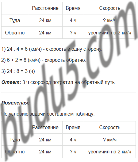 Скороход прошел 24 км за 4 ч. На обратном пути он увеличил скорость на 2 км/ч. Сколько времени он потратил на обратный путь?