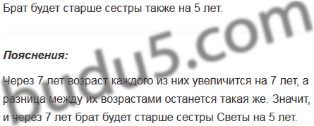 Вася старше своей сестры Светы на 5 лет. На сколько лет он будет старше Светы через 7 лет.