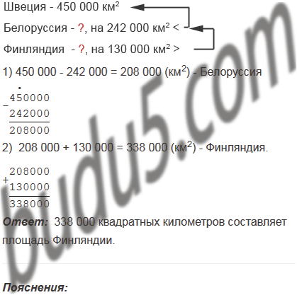 Площадь Швеции равна 450 000 км2, что на 242 000 км2 больше площади Белоруссии, которая на 130 000 км2 меньше площади Финляндии. Сколько квадратных километров составляет площадь Финляндии?