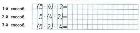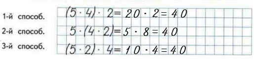 В третьем способе сначала узнаем количество гвоздик, если взять по одной вазе на первом и втором подоконниках, а затем умножим полученный результат на количество ваз на каждом из подоконников.