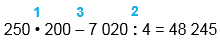 250 • 200 - 7 020 : 4 = 48 245
