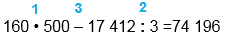 160 • 500 - 17 412 : 3 = 74 196